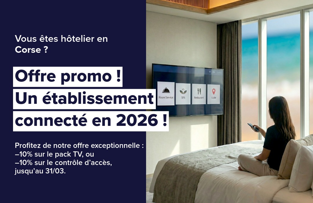 • Une meilleure expérience client : TV Hospitality à 0.80 ct/mois (portail d’accueil, infos services, streaming, room directory).